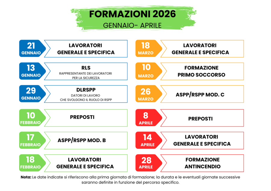 Scopri nel PDF qui sotto il calendario completo delle formazioni RC Soluzioni per il primo quadrimestre 2026: un planning ricco di corsi strutturati sia in videoconferenza sia in aula, pensati per offrire la massima flessibilità a ogni esigenza aziendale.
